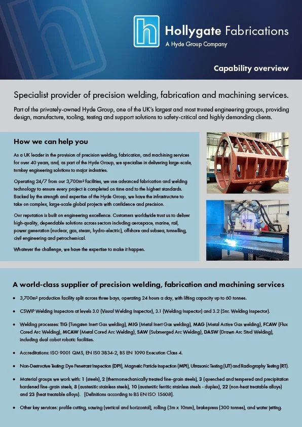 From our facilities in East Manchester, Hollygate Fabrications is able to offer extensive fabrication capability and capacity.